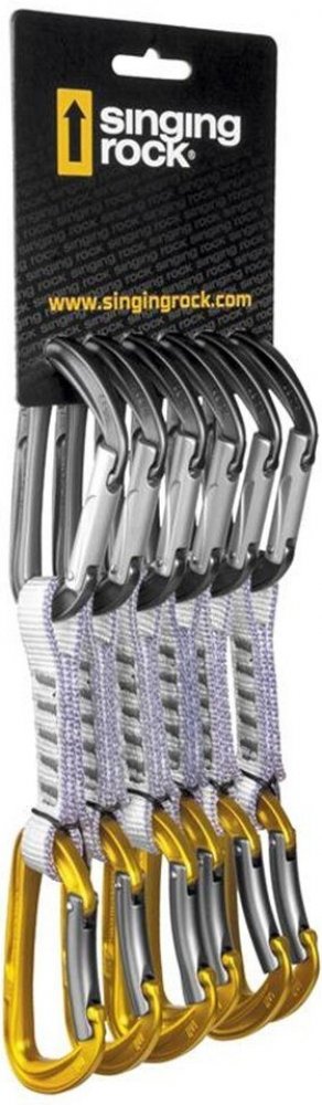 horní rovná karabina s Keylockem a speciálně tvarovanými drážkami na zámku pro snadné cvakání a vycvakávání karabiny z nýtu