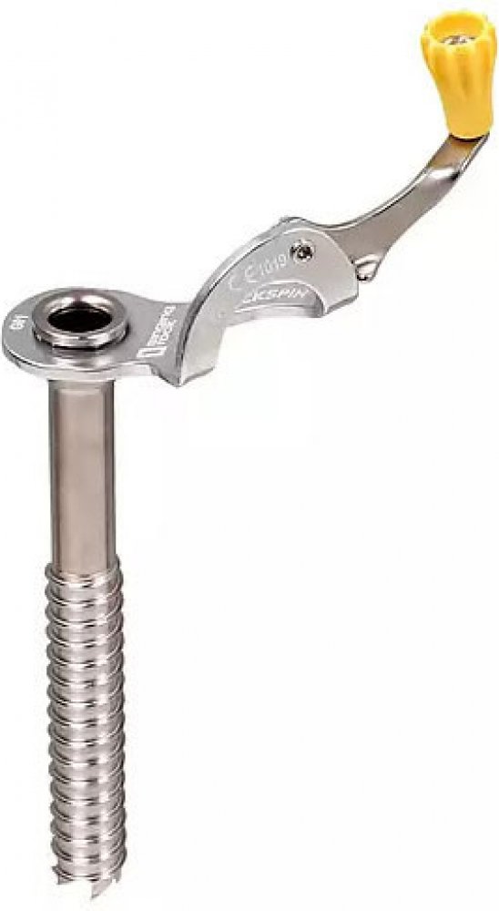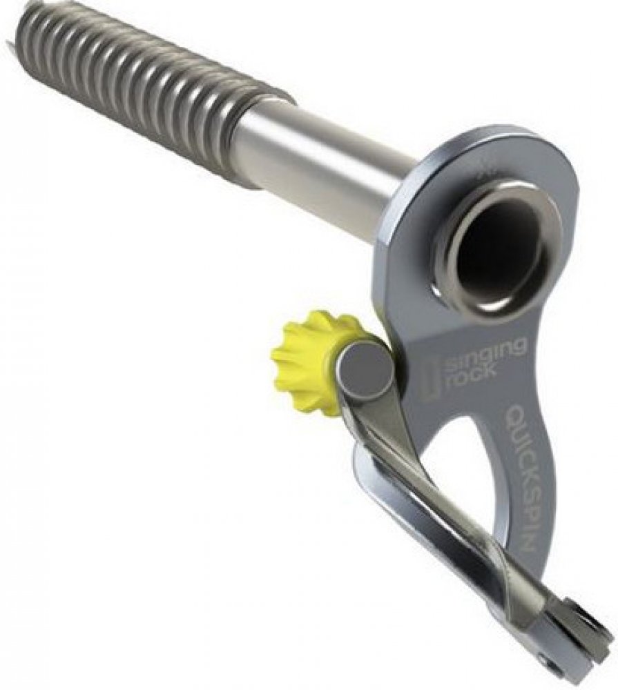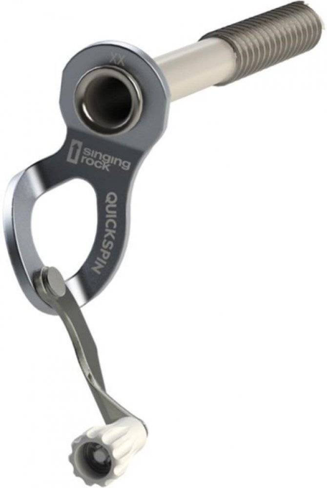 Šroub do ledu Quickspin L17 z tvrzené oceli s duralovou plaketou a sklopnou kličkou od českého výrobce horolezeckých potřeb Singing Rock je určený zejména pro lezení ledopádů. Velmi kvalitně zpracovaný šroub do ledu Quickspin L17 značky Singing Rock vyrobený z tvrzené CrMo oceli používané pro svou pevnost a dlouhou životnost. Disponuje integrovanou sklopnou kličkou, která se hodí pro rychlé a snadné zašroubování do ledu. Povrch kličky je vybaven hrubými vroubky pro snadnější a spolehlivější manipulaci v rukavicích. Nejvíce namáhaný dřík s tenkým profilem je ošetřen antikorozní úpravou pro ještě vyšší odolnost. Na jeho konci se nachází čtyři ostré zuby zajišťující snadnější a rychlejší zavrtání šroubu. Díky odlehčené ergonomické plaketě z duralu dosahuje šroub lepšího vyvážení. Dobré štosování v držáku umožňuje umístění dvou karabin.