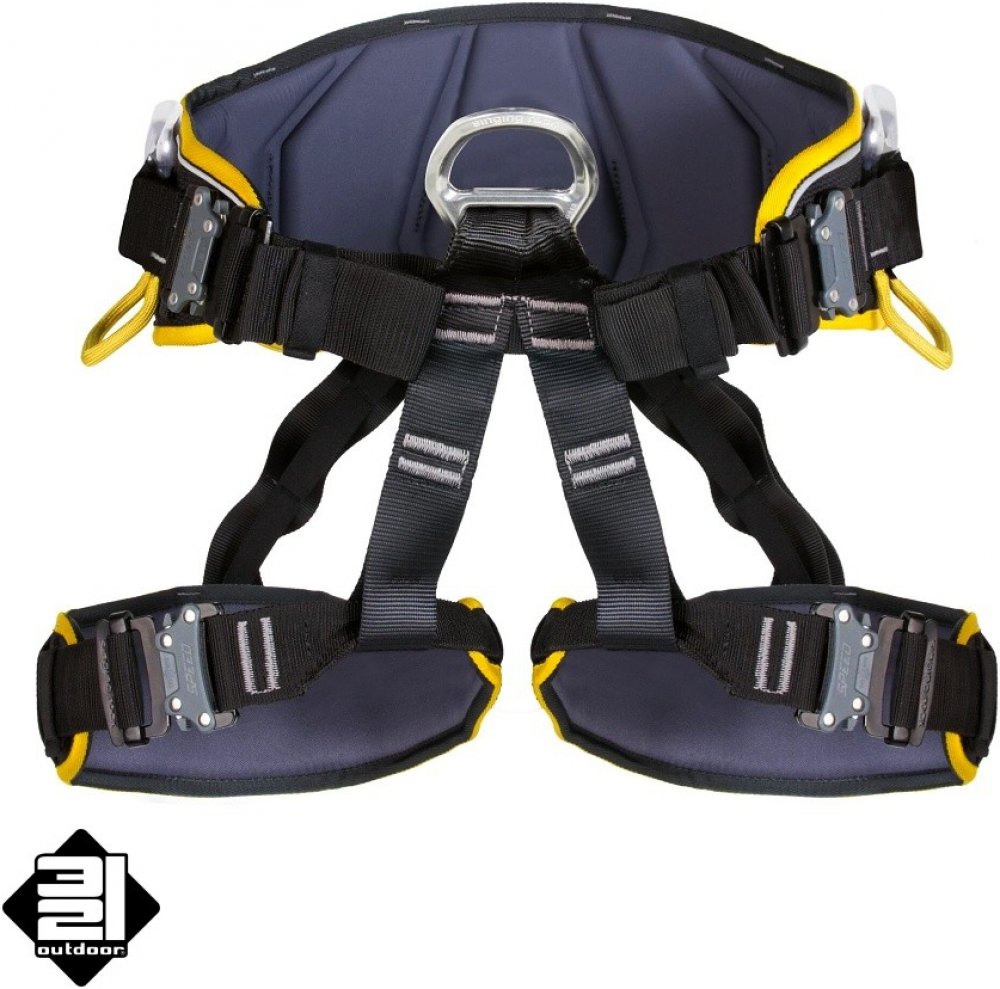Verze Speed dostala název podle spon, které se velmi rychle zapínají a otevírají. Spony Speed jsou bezpečné, protože je potřeba je otevřít dvěma prsty, není možné je otevřít pod zatížením a spona se nezavře, je-li přetočen popruh. To z nich dělá praktickou a bezpečnou součást úvazku. Dvě spony se nacházejí na bederním pase pro optimální vycentrování a dvě na nohavičkách.