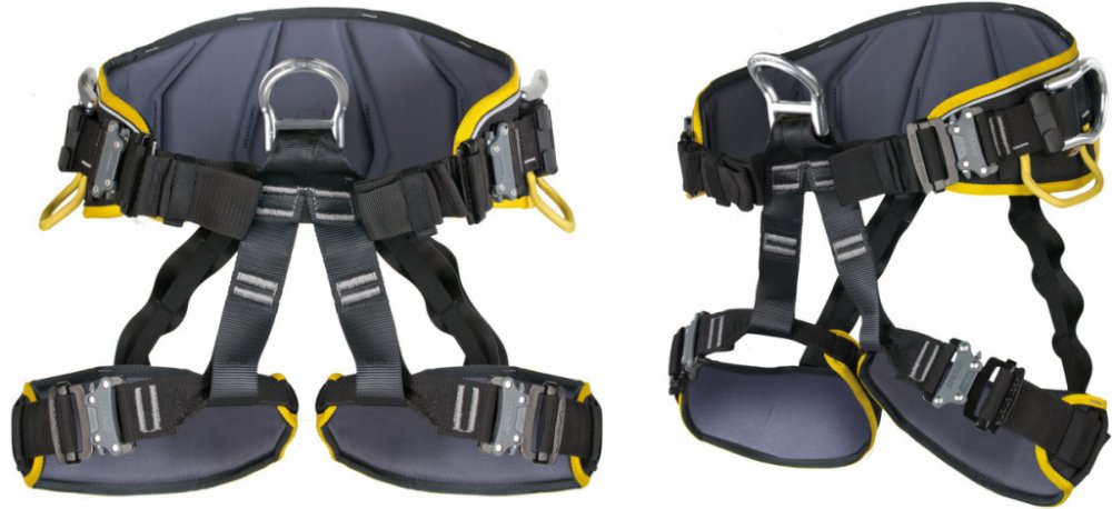 Odolnost sedacího úvazku je zvýšena látkou PES, která chrání bederní pás a nohavičky proti mechanickému opotřebení. Pro větší oděruvzdornost jsou z PES látky vyrobeny také popruhy spojující nohavičky s bederním pásem. Odolnost ocelových součástek vůči korozi je zvýšena technologií E-coating.