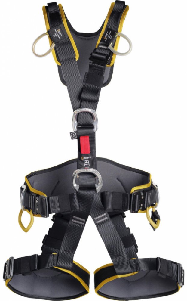Široký bederní pás se zádovým plastovým krytem a odolnými kluzáky pro pohodlný pohyb i odpočinek v záchytných systémech, vhodné i do stísněných prostor.