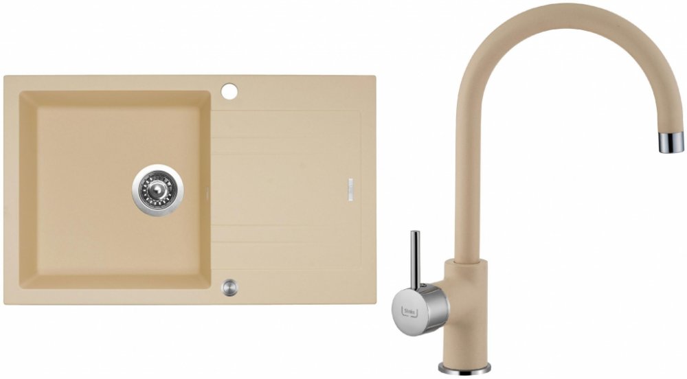 Set dřezu a baterie SINKS je vhodný pro novou i starší kuchyni. Jeho výhodou je obrovskou mechanická odolnost a velice rychlá údržba. V tomto případě jde o běžný samostatný dřez s jednou hlavní vanou. Tento džez vás okouzlí, pokud uvažujete o klasickém hranatém tvaru. Součástí dřezu a baterie je i plocha odkapávače na odkládání nádobí. Montáž dřezu a baterie SINKS je tzv. horní, přikládá se svrchu...