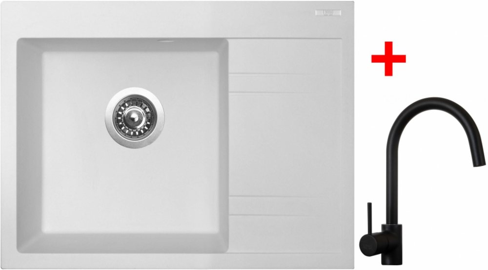 Granitový dřez Sinks RIM 650 LDřezy obsahují 84 % jemného kameniva, což ve spojení s kvalitním akrylátovým pojivem zaručuje dokonalou hebkost, pevnost a odolnost materiáluPro skříňku od 450 mm (vnější rozměr)Rozměr 650 x 500 mmRozměr vany 390 x 400 mmHloubka 200 mmOrientce dřezu levý (vana dřezu vlevo)Dřez bez otvoru pro baterii (zhotovíme na přání zdarma)Možnost napojení drtiče odpadůVýpusť 3 1/2 s manuálním ovládánímBalení obsahuje:Granitový dřezVýpusť 3 1/2Sifon s odbočkou na myčkuMontážní materiálStojánková dřezová baterie Sinks VITALIA černá - se zárukou 5 let na keramickou kartuši. Raménko je otočné a baterie je dodávána s veškerým příslušenstvím pro montáž. Výška baterie 330 mm zabezpečí bezproblémové napouštění vody i do vyšších hrnců.Otočné raménko o 360°Povrchová úprava granit - černá matnáVýška baterie 330 mmŠířka baterie 210 mmKeramická kartušeZáruka 5 let na keramickou kartušiInstalace do otvoru o průměru 35 mmObsah balení:Kuchyňská baterie2 ks připojovací hadiceMontážní materiál