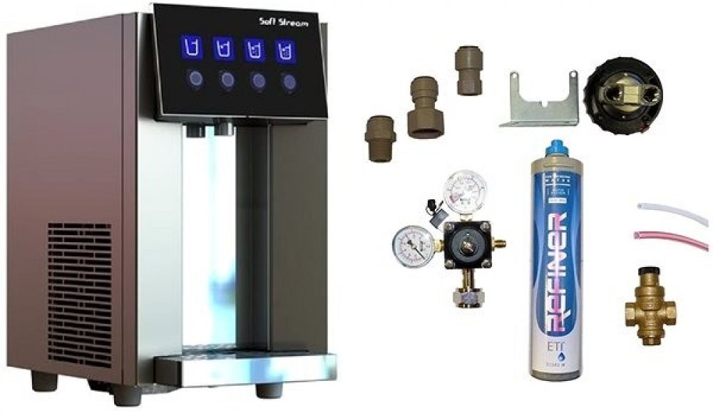 - voda - vodovodní řád - připojení na kohoutek se závitem 1/2" (nejlépe do 5m od sodobaru), voda na vstupu musí splňovat kritéria tlaku a kvality