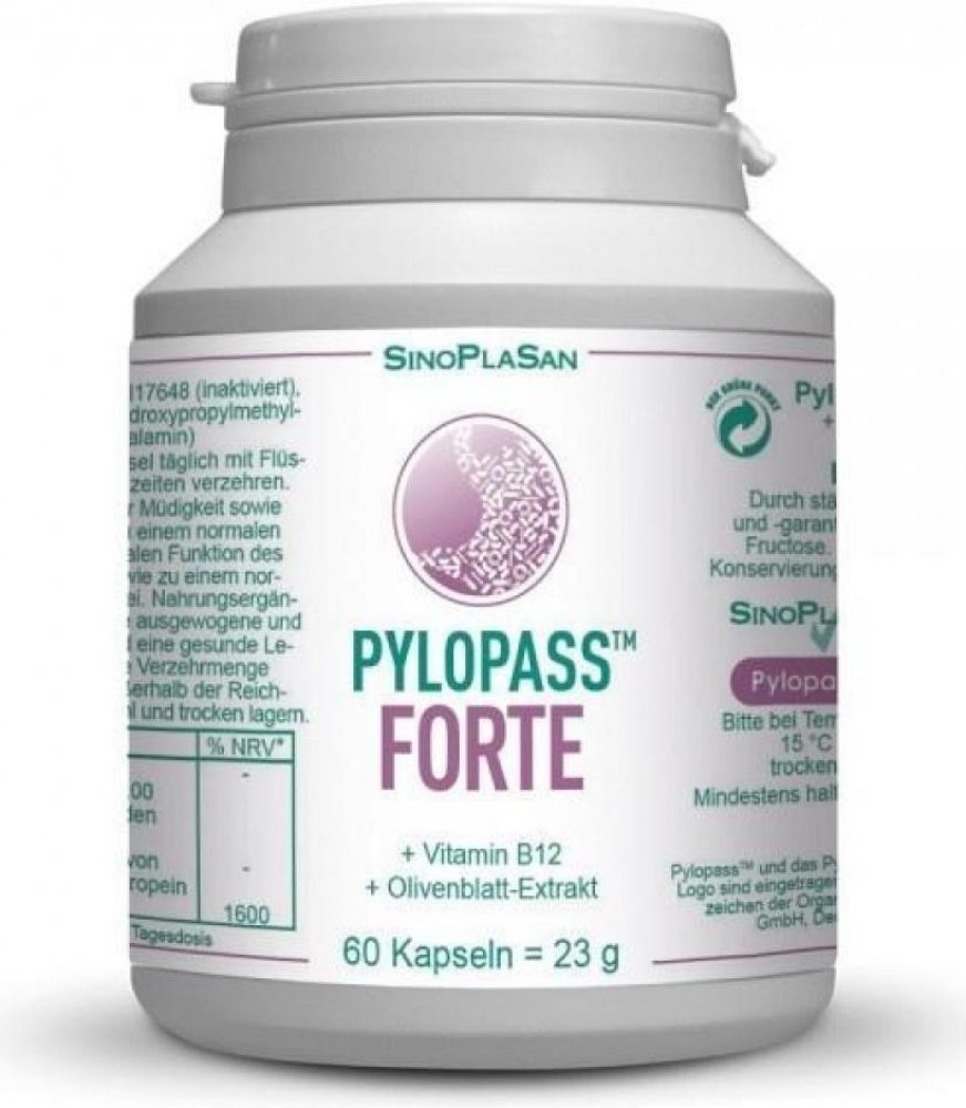 Pylopass FORTE pomoc v boji s bakterií Helicobacter pylori, 60 kapslí Doplněk stravy Pylopass FORTE značky SinoPlaSan obsahuje patentovanou účinnou látku Pylopass™, navíc ještě obohacenou o extrakt z olivových listů a vitamín B12. Tato speciální kombinace představuje výbornou doplňkovou pomoc při žaludečních infekcích způsobených bakterií Helicobacter pylori. Flexibilní dávkování umožňuje použití ...