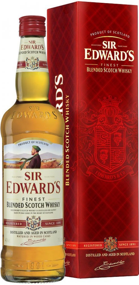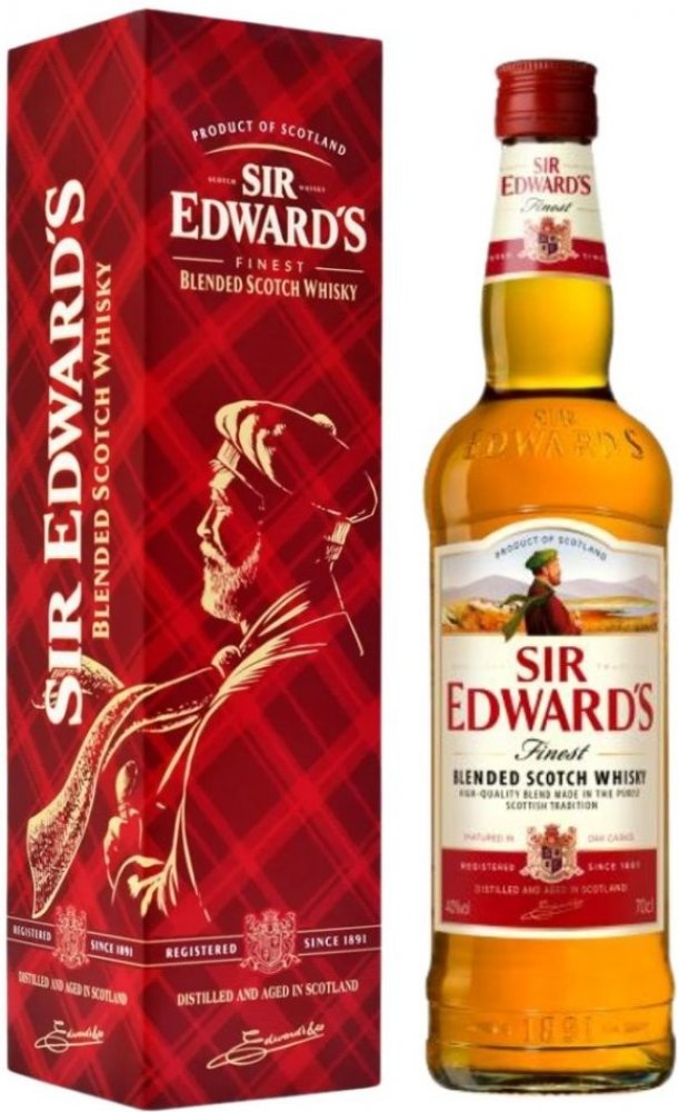 Sir Edward´s Blended Scotch je whisky, která se vyrábí alkoholovou destilací sladového ječmene ze skotského Speyside. Tato míchaná whisky je směsí z více vybraných druhů sladů s minimální dobou zrání v sudech 3 let. Díky vysokému obsahu Speyside sladů je struktura této whisky silná s výraznou kulatostí. Vůně je velice jemná, lehce zrnitá, ale plná s jemnými rašelinovými stopy, výraznou kulatosti, ...