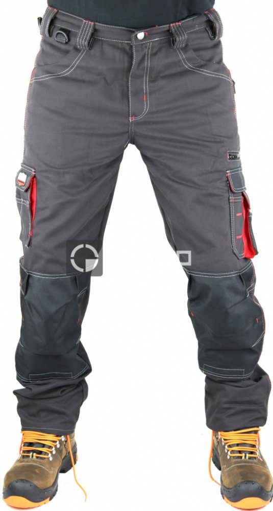 Více kapesní kalhoty vyrobené ze 65% polyesteru a 35% keprové bavlny, hmotnost 300 g / m2. Má dvě přední kapsy, dvě zadní kapsy z otěruvzdorné tkaniny s klopou a knoflíkem. Na pravé straně: dvojitá kapsa na metr, D-kroužek, multifunkční užitková kapsa s klopou a suchým zipem a držák na pero. Na levé straně: tkaninový kroužek na držáky nástrojů nad kapsami, jeden se zapínáním na zip a druhý s klopou a suchým zipem. Vyztužení proti opotřebení na kapsách chrániče kolen; spárované švy, dvojité švy, červené detaily a černé vložky Cordura.