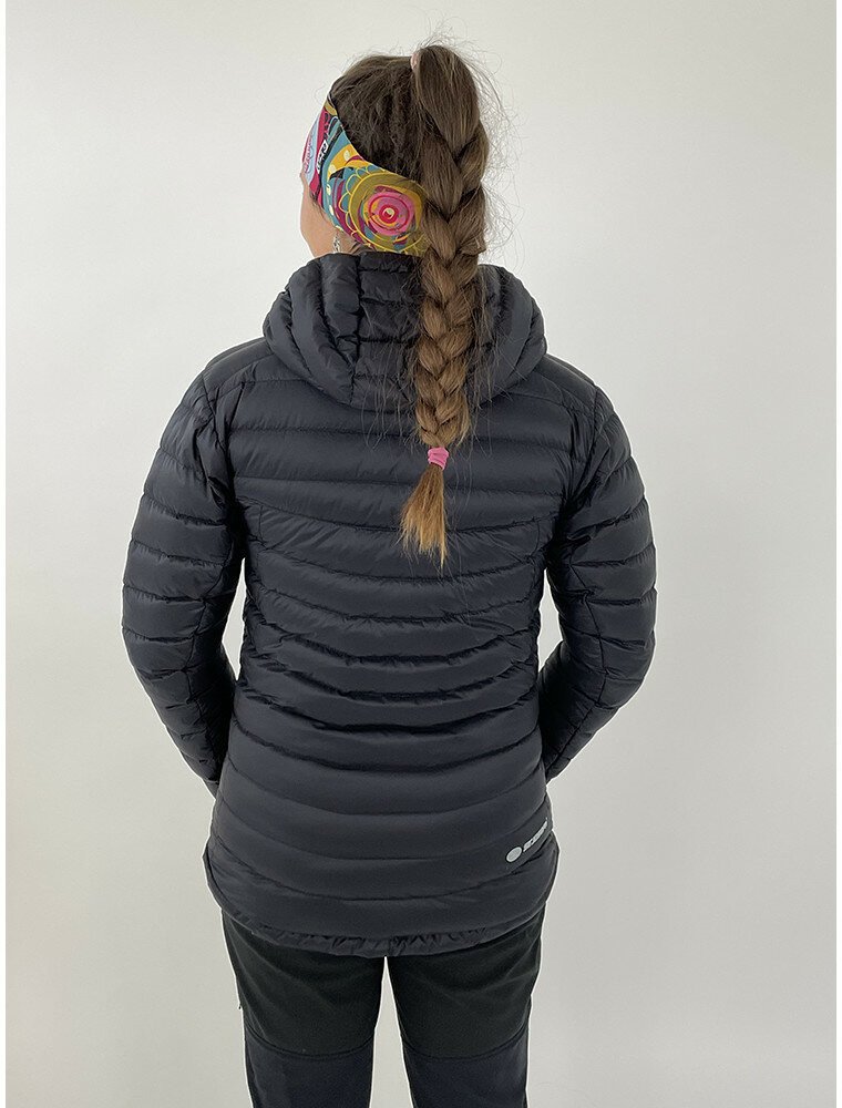 Dámská péřová bunda Sir Joseph Atol Hooded Lady II je z řady lehkých, hřejivých péřových bund, která se skvěle hodí jako druhá vrstva a usnadňuje vrstvení. Dámská péřová bunda Sir Joseph Atol Hooded Lady II pochází z řady lehkých, hřejivých a sbalitelných péřových bund a vest, které lze využít po celý rok a hodí se na velké spektrum outdoorových aktivit. Díky anatomické konstrukci a přiléhavému střihu usnadňuje tato bunda vrstvení a ponechá vám volnost pohybu při rotaci trupu a zvedání rukou. Dámské modely péřových bund Sir Joseph uznávají křivky ženského těla - přizpůsobený přední díl, projmutá záda a boky. Tuto bundu si rozhodně nezapomeňte sbalit do batůžku na každou výpravu za dobrodružstvím, jedná se totiž o skvělou střední vrstvu nebo klidně i vrchní vrstvu pro aktivní pohyb na horách, či relaxačnímu tempu na běžkách či skialpech. Pro kompresní sbalení do batohu, aby bunda zabrala co nejméně místa je dodávám samostatný váček. Bunda má také velmi prakticky prodloužený zadní díl, který chrání vaše záda před chladem. Bunda Atol Hooded Lady II má také kompaktní přiléhavou kapuci, které lze regulovat a je možné ji mít také pod helmou. Na tomto modelu také najdete tři kapsy na zip, levou kapsu také využijete při otočení naruby jako skladovací prostor a navíc se zde také nachází jedna velká vnitřní kapsa, kde si můžete schovat brýle či rukavice. Materiál: vrchní materiál - Softex® Nius LT, vnitřní materiál - Softex® 20D DWR, husí peří 650, recyklovatelné peří Hlavní vlastnosti: lehká, hřejivá péřová bunda anatomická konstrukce a přiléhavý střih umožňují volnost pohybu usnadňuje vrstvení prodloužený zadní díl pro sbalení je dodáván samostatný váček oboustranně rozepínatelný kostěný zip YKK Vrchní materiál této bundy je Softex® Nius LT s mikro rip-stop strukturou a DWR úpravou kompaktní přiléhavá kapuce jednoruční ovládání samosvorek tři kapsy na zip jedna velká vnitřní kapsa na brýle či rukavice Představení dámské péřová bundy Atol Hooded Lady II: