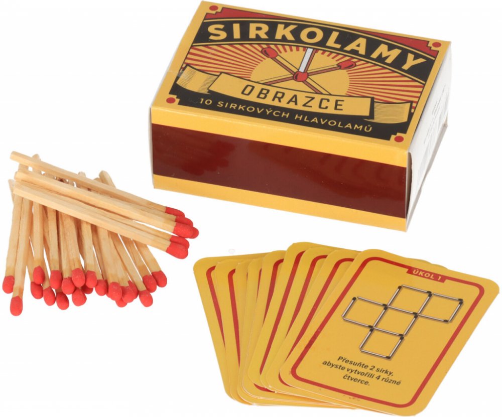 Vraťte se spolu s námi do dětství a připomeňte si retro sirkové hlavolamy a rébusy. V zápalkové krabičce najdete 10 zadání hlavolamů, které vám nedají spát. Vezměte si kartu úkolu, rozestavte sirky a splňte zadání. Řešení každého hlavolamu najdete vždy na druhé straně karty úkolu. Hlavolamy Sirkolamy obsahují: 20 sirek a 10 karet
