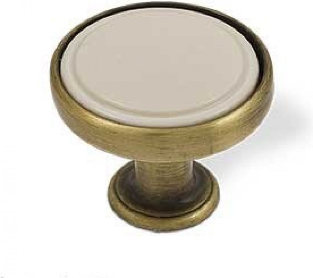 Kovová knopka SIROPrůměr: 30 mm, Povrch: staromosaz brinýr kartáčovaný / plast béžovySoučást balení: 1x M4 šroubSpojení kovového těla s plastovým vnitřkem je u knopek SIRO oblíbená především pro pestř