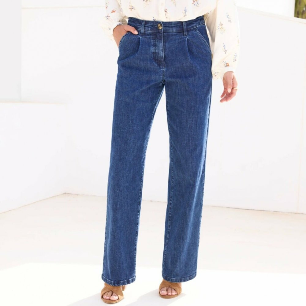 Široké džíny se záševky prodlouží postavu a zároveň dodají městský city look. Široký střih, vysoký pas. Na každé straně sklady. 2 klínové kapsy. 2 falešné kapsy s paspulkou + 2 záševky vzadu. Pas s 5 poutky. Zapínání na zip + 1 knoflík. Prošitý lem na koncích nohavic. Prošití tón v tónu. Lze prát v pračce. Tento produkt má certifikaci MADE IN GREEN by OEKO-TEX®. Tato certifikace zaručuje jak přísné chemické analýzy (STANDARD 100), tak odpovědnou výrobu, hodnocenou podle kontrolovaných environmentálních a sociálních kritérií.