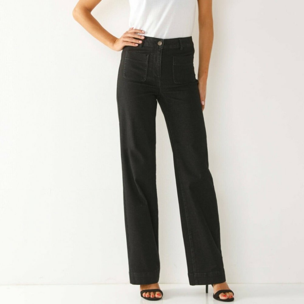 Rovný střih, příjemná šířka, vysoký pas, eco-friendly denim** - tyto džíny Vám poskytnou maximální volnost pohybu. Speciálně navržené pro ženy s výškou méně než 160 cm. Široký střih. Vysoký pas. Tvarovaný pas s poutky. Zapínání na zip + knoflík. 2 našité kapsy vpředu. Vzadu 2 našité kapsy a zvýšený zadní díl. Kontrastní prošití. Společnost Blancheporte zvolila recyklovaný polyester, čímž přispívá k boji proti plýtvání a podporuje odpovědnější spotřebu, která respektuje životní prostředí. Lze prát v pračce. Tento produkt má certifikaci MADE IN GREEN by OEKO-TEX®. Tato certifikace zaručuje jak přísné chemické analýzy (STANDARD 100), tak odpovědnou výrobu, hodnocenou podle kontrolovaných environmentálních a sociálních kritérií.