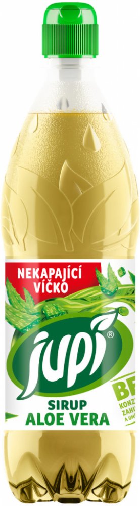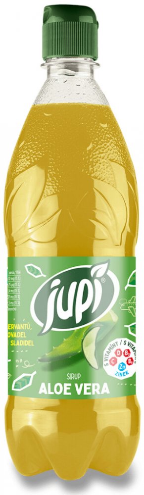Tradiční sirup Jupí s příchutí aloe vera, nyní obohacen o vitamíny C, D, B1, B2 a zinek