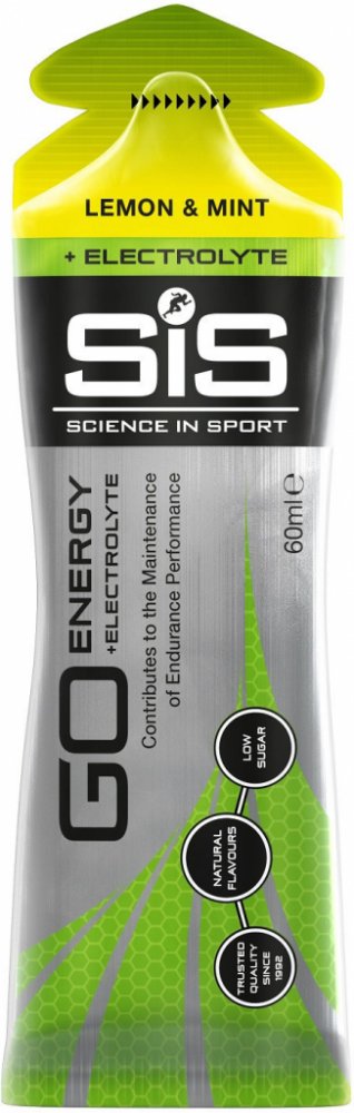 GO ENERGY + electrolyte s příchutí - doplněk stravy. Se sladidlem.Prodej po 1ks, celé balení obsahuje 30ksEnergetický gel ideální pro delší výkony. Pomáhá tělu lépe absorbovat tekutiny.SiS GO Energy + Electrolyte pomáhá tělu udržovat rovnováhu tekutin rychlým dodáním lehce stravitelných sacharidů (22 g) pro energii, ale také 118 mg sodíku, draslíku 9.5 mg a 1,5 mg hořčíku na gel. Tyto složky ztrácíme během zátěže prostřednictvím potu a je třeba je nahradit.SiS GO Energy + Electrolyte byl navržen tak, aby vám pomohl udržet výkon při dlouhodobém vytrvalostním výkonu tím, že poskytuje rychlou energii a pomáhat vašemu tělu absorbovat vodu.Složení: Voda, maltodextrin (z kukuřice), sůl, přírodní aroma, želírující činidla (guma gellan,xantanová guma), regulátor kyselosti (kyselina citrónová, citran sodný), sladidlo (acesulfam K,sukralóza), konzervační látky (sorban draselný, benzoát sodný), chlorid draselný, citran hořečnatý.Doporučené dávkování: k udržení hladiny energie konzumovat 2 gely během 60 minut, během dlouhého výkonu nebo za teplých podmínek, užít navíc 1 gel společně s vodou. Doporučená denní dávka se nesmí přesáhnout.Použití: během výkonuObsah: 60mlSkladování: Uchovávejte na suchém, chladném a tmavém místě. Skladujte mimo dosah malýchdětí. Chraňte před přímým slunečním zářením.Upozornění: Tento doplněk stravy se nesmí používat jako náhrada pestré stravy a není určenpro děti. O užívání v průběhu těhotenství a kojení se poraďte se svým lékařem. Tento produkt neje určen jako prevence nebo lék na některá onemocnění.