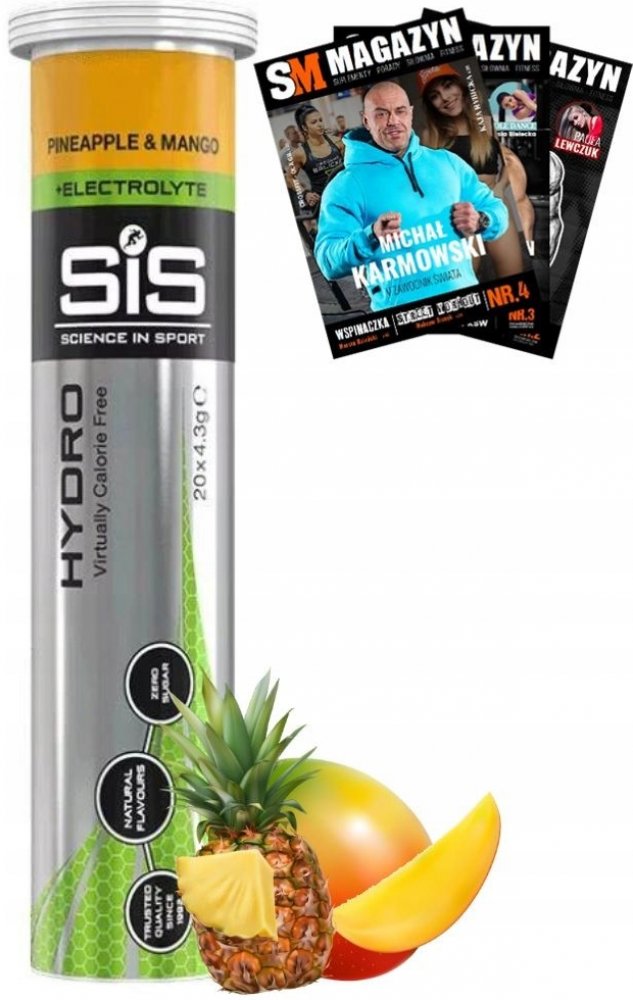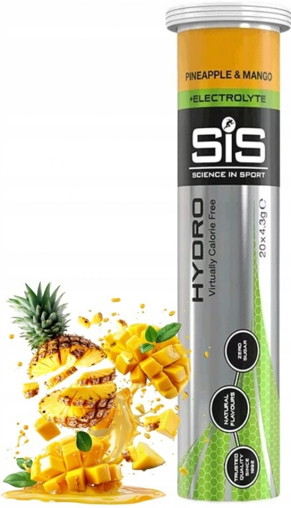 SiS izotonický 4.0 g tablety s nízkým obsahem sacharidů se středním obsahem sodíku 20 0.18 g per 100 ml 8.8 kcal Na 300 mg; K 65 mg; Ca 102 mg; Mg 8.1 mg sukralóza; sorbitol 1 tableta v 500 ml vody; pít před/během/po výkonu