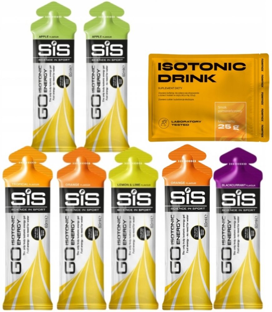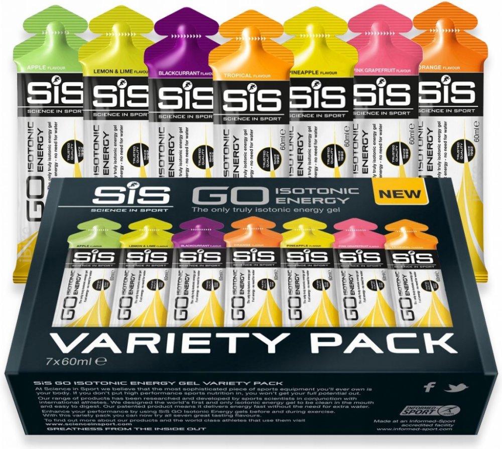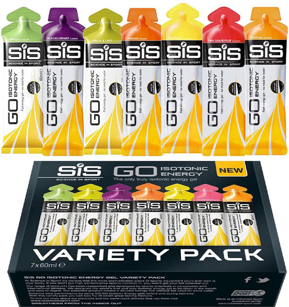 SiS Go Isotonic Variety Pack je dobře stravitelný gel s rychlým přísunem sacharidů během sportovního výkonu. Gely je možné pozřít bez vody, což zajistí rychlou dávku sacharidů do svalů bez pocitu plnosti která může nastat při nadměrném pití.
