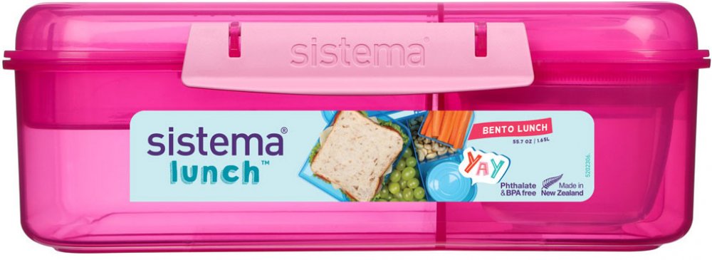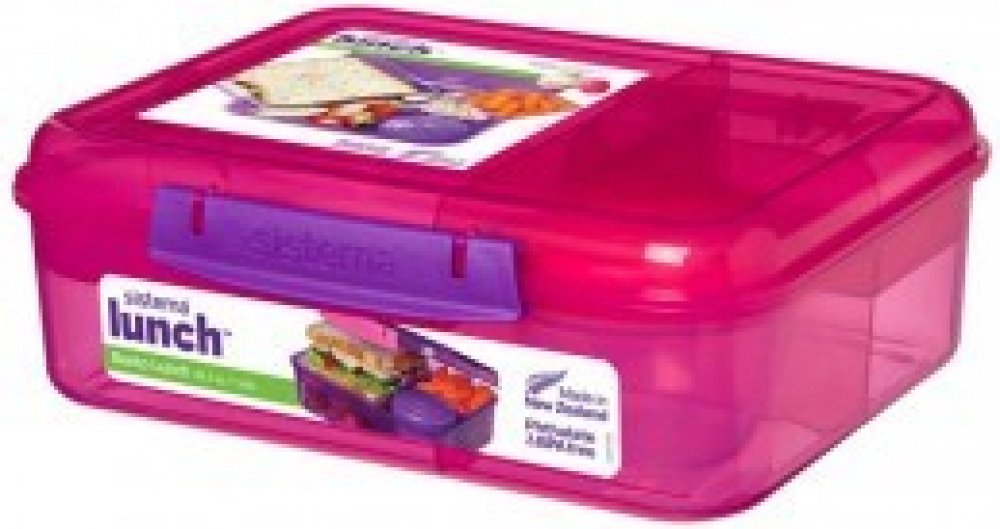 Vnitřní členění krabičky: přepážky, 2 vyjímatelné misky, kelímek s víčkem na omáčku nebo jogurt Víko se spolehlivým zaklapávacím klipem Sistema Kelímek o objemu 150 ml na tekuté přílohy (dressing, omáčka, šťáva nebo jogurt) má šroubovací víčko Krabička je vhodná do mrazáku Lze mýt v myčce na nádobí Možno použít i v mikrovlnné troubě Stohovatelné Neobsahuje BPA ani ftaláty Navrženo a vyrobeno na Novém Zélandu . Rozměry: 21,8 x 18,5 x 7,7 cm Objem: 1,65l Barva: fialová . . Všechny barevné varianty: