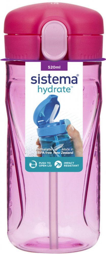 Sistema Láhev Quick Flip Top 520ml, modrá. Láhev je ideální do školy, práce, na sport nebo pikniky, pro správnou hydrataci na cestách. Je vybavena odklápěcím horním víkem s tlačítkem pro snadné otevření a šikmým vnitřním silikonovým brčkem, které umožní úplné vypití obsahu. Tento výrobek lze mýt v myčce (na horním roštu), případně i uložit do mrazáku. Není určena pro horké tekutiny nebo sycené náp...