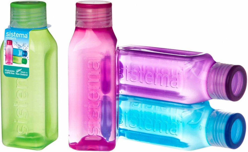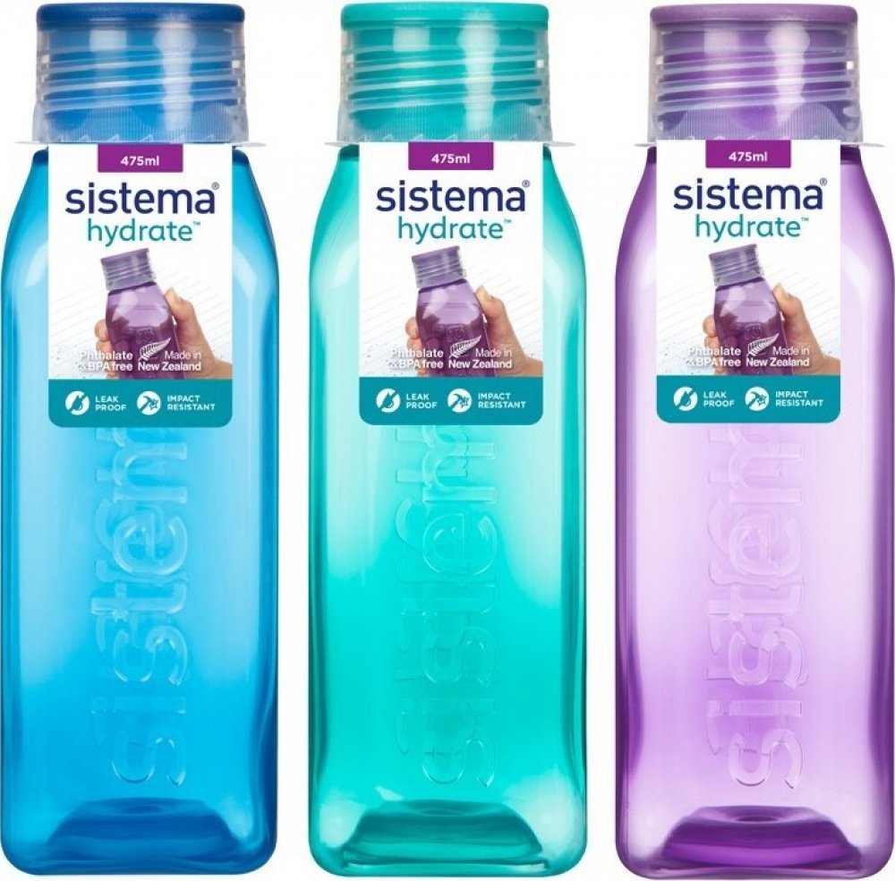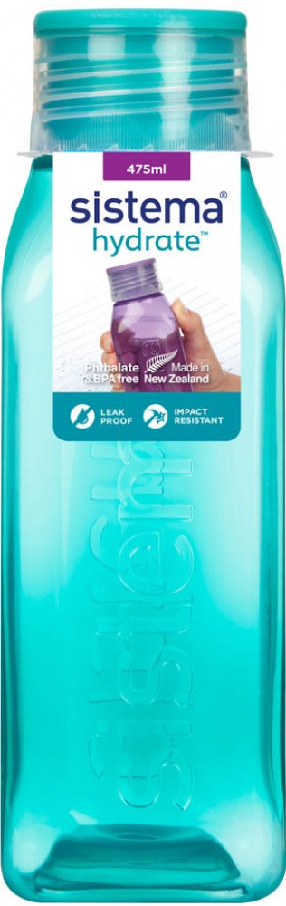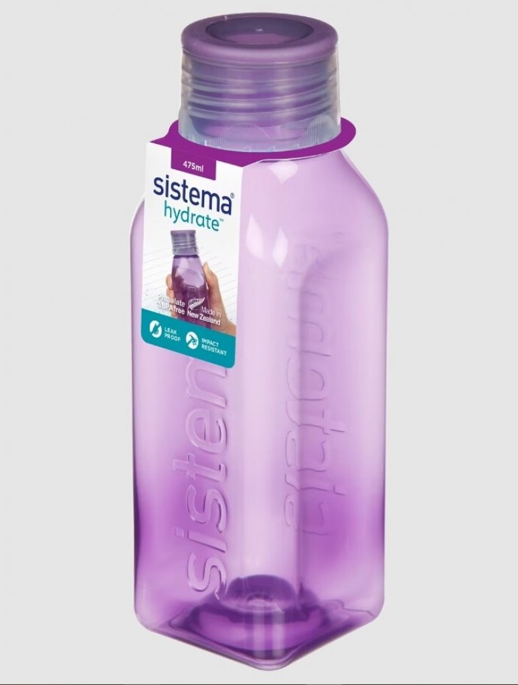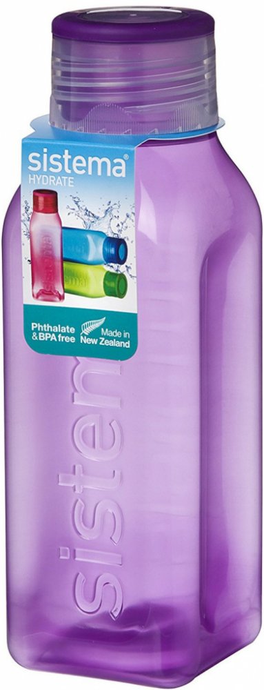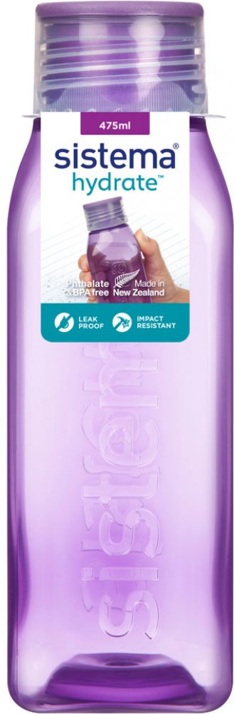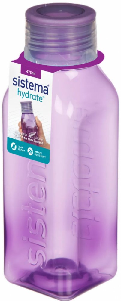Láhev Sistema Square 475ml fialová. Ideální do kanceláře, školy, sportu a na cesty. Těsnící šroubovací horní víko. Konkávní (vypouklé dovnitř) strany pro snadný úchop. Láhev čtvercového tvaru je velmi stabilní (neskládá se na bok) a krásně vejde do dveří vaší chladničky. Není určeno pro horké kapaliny. Vyrobeno z nezávadného materiálu bez ftalátů a BPA. Rozměry: šířka 60 mm, hloubka 60mm, výška 18...