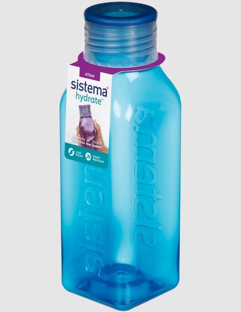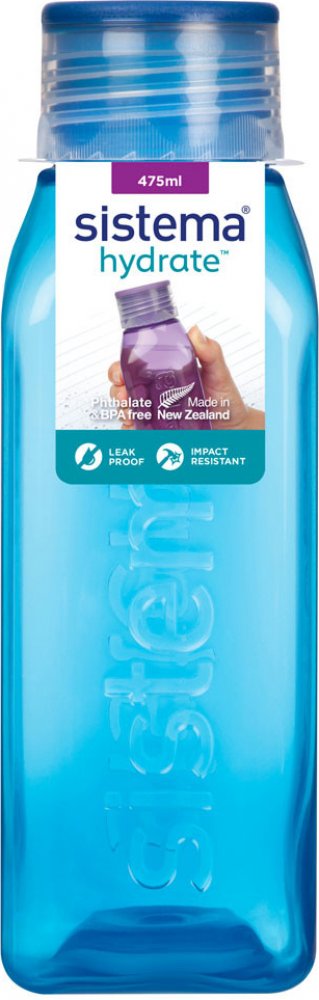 Láhev Sistema Square 475ml fialová. Ideální do kanceláře, školy, sportu a na cesty. Těsnící šroubovací horní víko. Konkávní (vypouklé dovnitř) strany pro snadný úchop. Láhev čtvercového tvaru je velmi stabilní (neskládá se na bok) a krásně vejde do dveří vaší chladničky. Není určeno pro horké kapaliny. Vyrobeno z nezávadného materiálu bez ftalátů a BPA. Rozměry: šířka 60 mm, hloubka 60mm, výška 184 mm. Barva: modrá. Vhodné do myčky na nádobí.