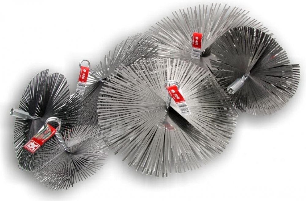 Ocelové komínové kartáče SIT s plochým drátem jsou určeny na čištění komínů různých průměrů. Slouží k vymetání shora i zdola.(Nejsou vhodné na komín s nerezovou vložkou!)Ke kartáčům se pořizuje pružná vymetací tyč nebo kabel se závitem M12 délky dle potřeby.