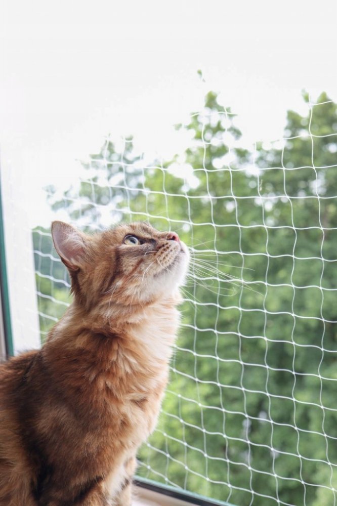 Praktická ochranná síť pro kočku vhodná na balkóny, terasy, okna nebo dveře. Ochranná síť pro kočky k dodání o třech velikostech.