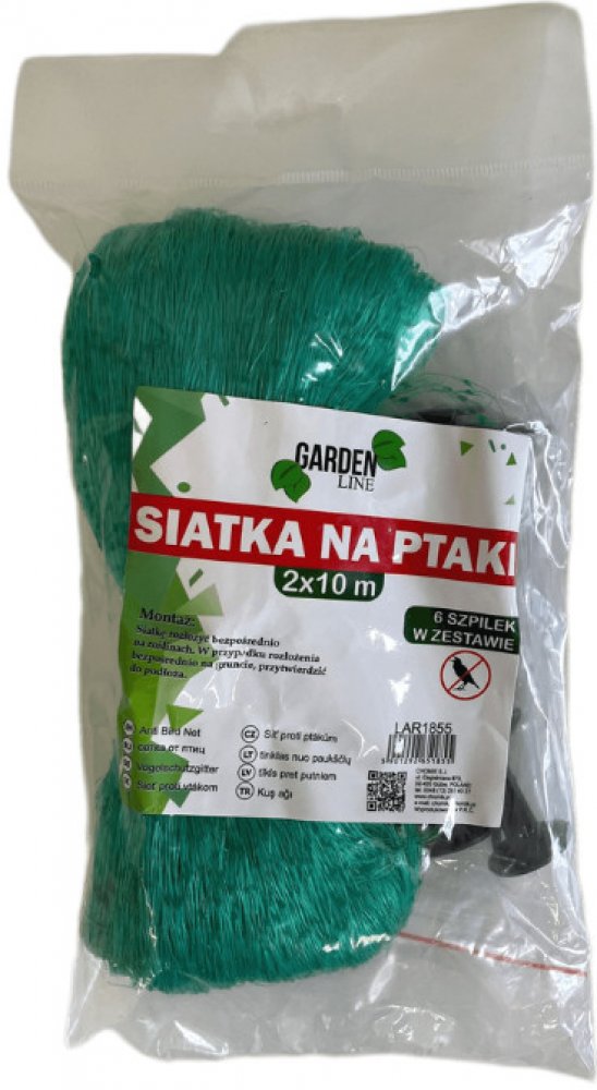 Ochranná síť na rostliny a stromy před ptáky. Velikost sítě 2x10 m. Velikost ok 15x15 mm. V balení 6 plastových kolíků k přichycení sítě k zemi.
