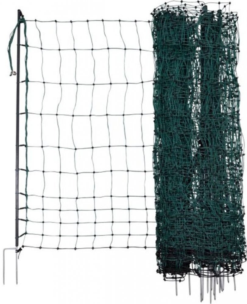 Ohradníková vodivá síť pro drůbež, výška sítě 106 cm, délka sítě 15 m, 6 plastových tyček s dvojitým hrotem, 4 kotvící háky. Pokud hledáte vodivou síť ke konstrukci elektrického ohradníku, pak pro Vás máme bezva tip. Vodivá síť pro drůbež je skvělým a nesmírně jednoduchým způsob vymezení výběhu pro slepice nebo pro jehňata. Ochranná síť pro drůbež zamezí úniku slepic či jehňat a navíc je ochrání před predátory. Ochrannou síť pro drůbež můžete využít k "oplocení" jakéhokoliv prostoru a vytvoříte tak během chvilky bezpečný prostor pro slepice na zelené trávě. Tento variabilní výběh pro slepice je v zelené barvě, a tak skvěle zapadne do každé zahrady. Na vodivou síť je možné napojit bateriový zdroj a tím vytvořit elektrický ohradník.