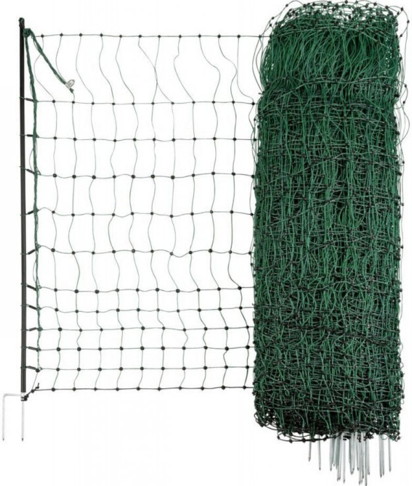 Elektrická vodivá síť pro drůbež - 106 cm, zelená, 25 m, 2 hroty Tato elektrická ochranná síť je ideální volbou pro zabezpečení chovu slepic, krůt, krocanů a jiných drůbežích druhů. Síť nejen zamezuje úniku zvířat, ale také je účinně chrání před predátory. Díky robustnímu provedení a jednoduché údržbě je tato síť praktickým řešením pro vaše potřeby v oblasti chovu. Délky sítě: Dostupná v variantách 15 m, 25 m a 50 m. Výška sítě: 106 cm, což zajišťuje dostatečnou ochranu před přelezením. Počet plastových tyček: Varianta 15 m: 6 plastových tyček Varianta 25 m: 9 plastových tyček Varianta 50 m: 15 plastových tyček Vodivost: Síť obsahuje vodiče o průměru 3 x 0,2 mm, které zajišťují optimální přenos elektrické energie. Pevnost a odolnost: Horní řada sítě je zesílena, svařené uzlové spojení zabraňuje roztřepení lanka, čímž je zajištěna dlouhá životnost sítě. Bezpečnost: Šířka mezi jednotlivými uzly je pouze 6 cm, což brání zvířatům v úniku. Barva: Zelená – esteticky se hodí do prostředí zahrad i pastvin. Napájení: Kompatibilní s bateriovým zdrojem Compact Power B 40, který lze použít spolu se zemnící tyčí. Snadná oprava: V případě poškození sítě lze rychle a snadno provést opravu pomocí spojky Litzclip. Možnosti doplňků: K síti lze dokoupit náhradní izolátory a zarážky pro lepší stabilitu a funkčnost. Výhody Zde je 5 hlavních výhod elektrické vodivé sítě pro drůbež: Ochrana před predátory – Síť spolehlivě chrání drůbež před nebezpečnými predátory, jako jsou lišky nebo kuny, a zajišťuje bezpečí vašeho chovu. Prevence úniku zvířat – Díky pevnému materiálu a konstrukci sítě nedochází k úniku slepic, krůt či jiných zvířat z vymezeného prostoru. Snadná instalace a oprava – Síť lze rychle nainstalovat a v případě poškození jednoduše opravit pomocí spojky Litzclip, což šetří čas i náklady na údržbu. Flexibilní délky a variabilita použití – Síť je dostupná v různých délkách (15, 25 a 50 m), což umožňuje přizpůsobit ji podle konkrétních potřeb chovatele. Kompatibilita s bateriovým napájením – Síť lze napájet bateriovým zdrojem Compact Power B 40, což zajišťuje efektivní elektrické zabezpečení i v místech bez přístupu k elektrické síti. Tato elektrická síť pro drůbež je ideálním řešením pro chovatele, kteří chtějí mít pod kontrolou své zvířectvo a zároveň je efektivně ochránit před nebezpečím.