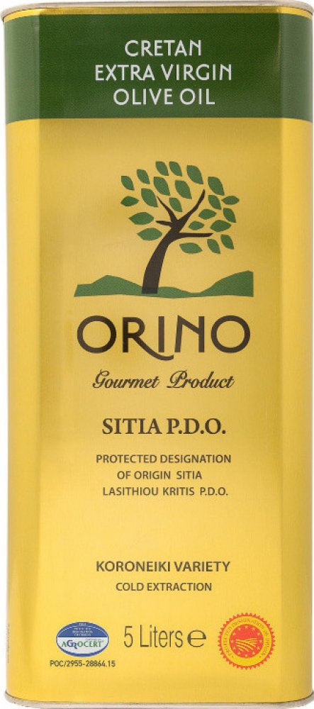 Krétský extra panenský olivový olej Orino, který se vyrábí na východní Krétě v údolí Sitia v oblasti Lassithi. Pochází z oliv odrůdy Koroneiki s nízkou kyselostí. Olej z odrůdy Koroneiki má velmi výraznou vůni i chuť. Způsob výroby je lisování za studena při 27°C
