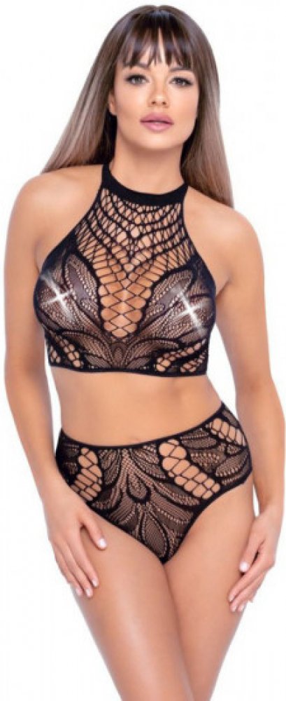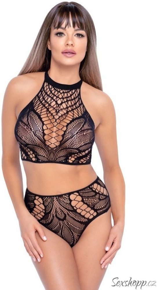 Síťovaný set prádla – crop top a kalhotky s otvorem v rozkroku
