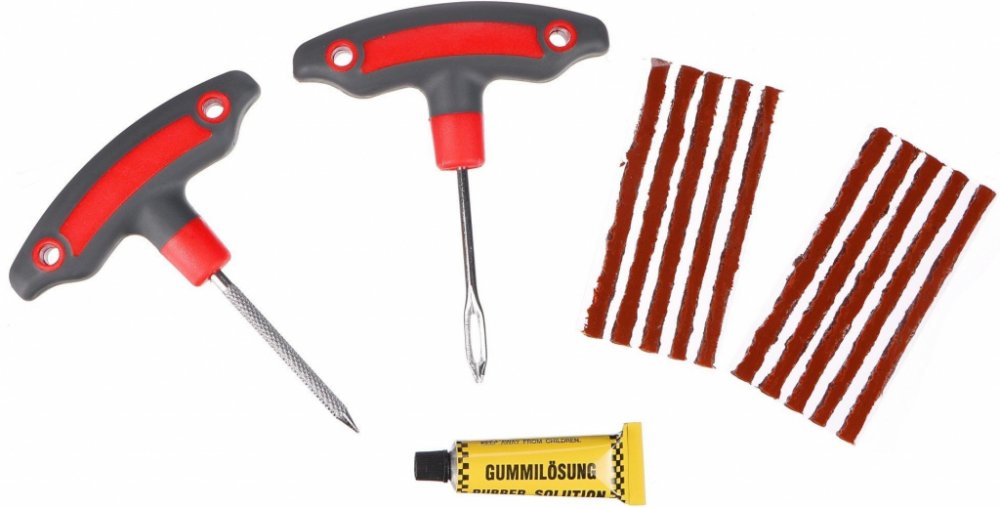 Sada na opravu defektu pneumatiky CAR TIRE REPAIR SET 3 Sada na opravu defektu pneumatiky CAR TIRE REPAIR SET 3 je nezbytným pomocníkem každého řidiče. Umožní vám snadno, rychle a dočasně vyřešit nečekaný defekt bez nutnosti navštívit servis bez ohledu na to, zda jste na dlouhé cestě, v práci nebo doma. Návod k použití: Najděte místo, kde je pneumatika propíchnutá, případně odstraňte předmět, který způsobil defekt. Do otvoru zasuňte průtažník a následně ho protahujte směrem nahoru a dolu - do doby než bude snadno procházet otvorem - tímto je otvor vyčištěn a připraven. Knot zbavený ochranné fólie provlékněte otvorem vidlice a naneste na něj vulkanizační roztok. Zastrčte vidlici s nasazeným knotem do otvoru tak, aby jeho polovina zůstala z vnější strany pneu, poté otočte vidlicí a pomalu ji vytáhněte. Odřízněte zbytek knotu co nejblíže k pneumatice.
