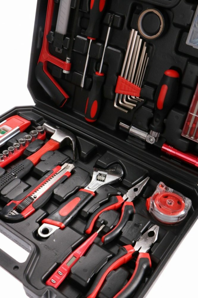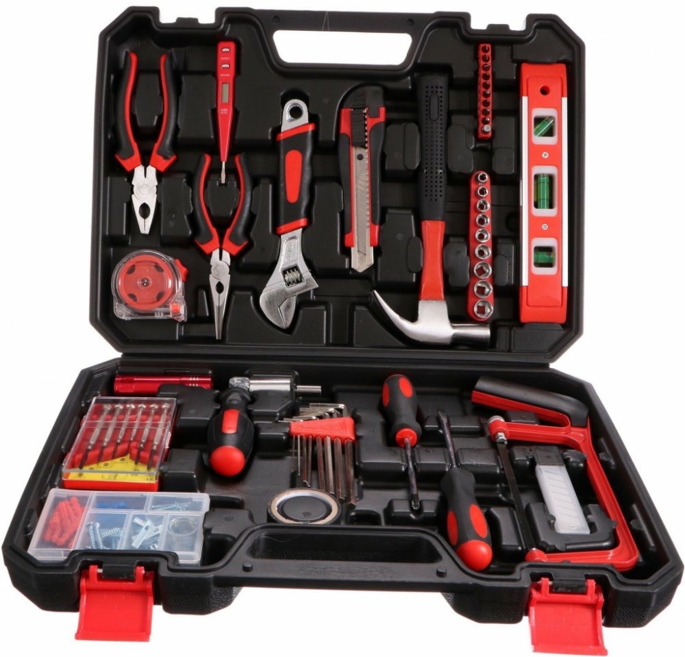 Všestranná sada nářadí SIXTOL HOME se 110 ks obsahuje vše, co můžete při práci doma nebo v dílně potřebovat. Tuto kompaktní sadu nářadí využije každý domácí kutil. V sadě naleznete základní elektrikářské nářadí, ráčnu, svítilnu, kleště, kladivo, metr, vodováhu, širokou škálu bitů a hlavic a mnoho dalšího. Součástí je i množství užitečného spojovacího materiálu. Nářadí je uloženo ve stylovém plastovém kufru, který si můžete vzít i na cesty.