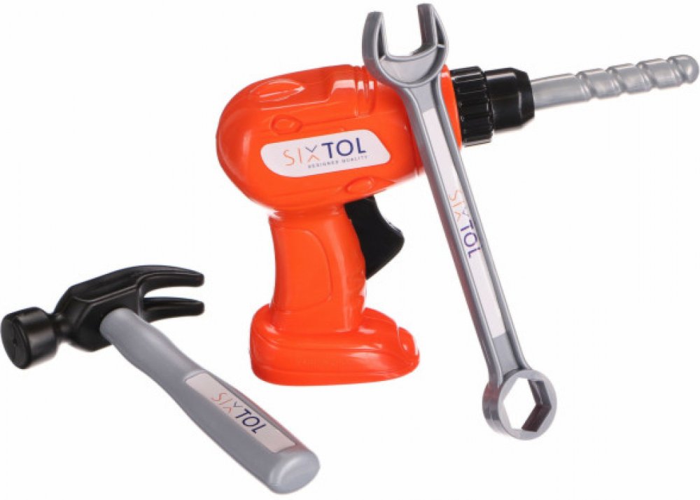 Jedinečná sada dětského nářadí pro každého malého kutila. V soupravě je plastová imitace vrtačky s mechanickým systémem otáčení a třemi vrtáky, plastové kladívko, hasák, SIKO kleště, kombinované kleště, šroubovák s vyměnitelnými nástavci a očkoplochý klíč.