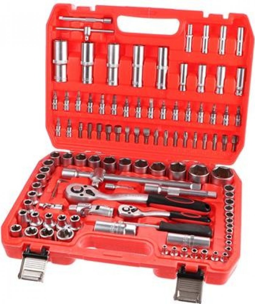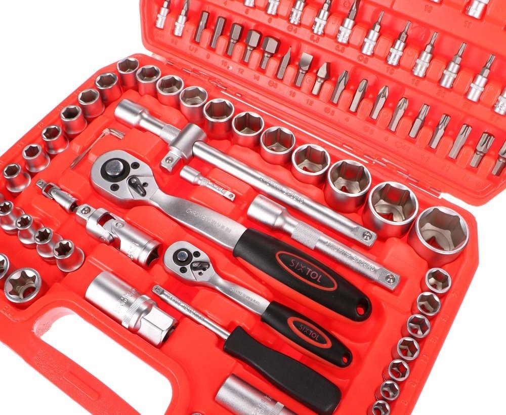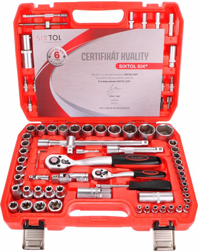 Chcete mít v dílně kvalitní gola sadu, která bez obav vydrží i náročné podmínky? Pořiďte si set CRV 108 Profi od značky Sixtol, který využije každý domácí kutil i profesionální automechanik. V červeném plastovém kufru s kovovými panty a přezkami najdete 108 kusů nářadí. Díky praktickému držadlu ho navíc snadno přenesete, sada je tedy ideální na cesty.