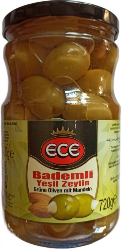 Zelené olivy prémiové velikosti plněné mandlemi jsou ideálním doplňkem každé párty nebo oslavy. Olivy jsou ošetřeny šetrnou pasterizací, a proto je slaný nálev velmi decentní. Konzistence oliv na skus je příjemně pevná, šťavnatá a v kombinaci křupavými mandlemi tvoří perfektní kombinaci.
