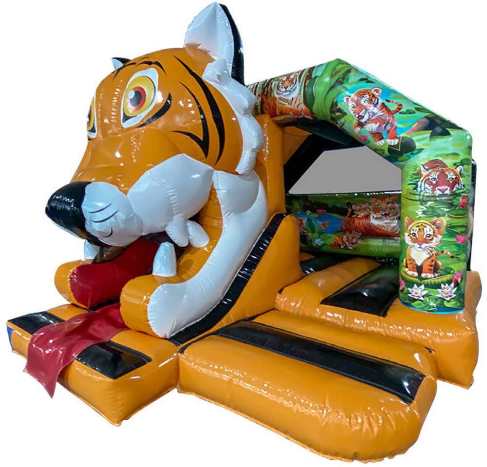 Skákací Hrad se skluzavkou a stříškou | EU výroba | 4,6 x 3,7m - 3D motivy TÉMATIKA: Tygr