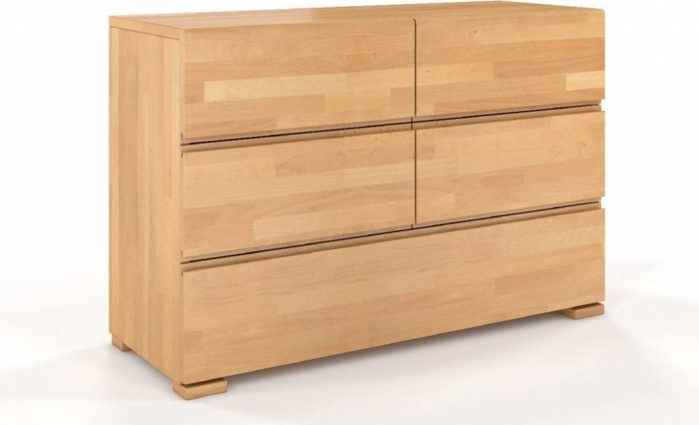 Buková komoda Skandica VESTRE se 6 zásuvkami je dokonale sladěnou kombinací funkčnosti a vynikajícího designu. Je navržen s ohledem na modernost a dokonale se hodí do takových interiérů. Dokonale ladí s nábytkem z řady VESTRE. Bude ozdobou ložnice, obývacího pokoje, chodby nebo pokoje teenagera. Klasické úchytky v komodě byly nahrazeny výřezy v čelech zásuvek. Horní hrana horní zásuvky - přiléhající k horní části - byla zaoblena, což nábytku dodává lehkost. Výsuvy zásuvek v komodě VESTRE jsou obohaceny o systém tichého dovírání a brzdy. Díky tomu se zásuvky zavírají tiše a tiše, vlastně samy od sebe.