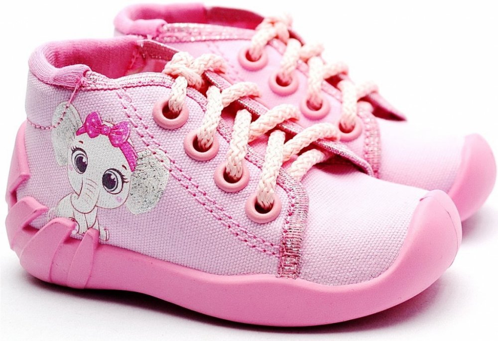 Bačkůrky jsou určené nejmenším dětem, vhodné i pro první krůčky. Vyztužená pata, nízký klínovitý podpatek, boky stabilizující chodidlo a pružná prodyšná podrážka zajistí nožičkám správný vývoj a pohodlí pro celodenní nošení doma i ve školce. Vhodné pro střední nožičky bez vyššího nártu.