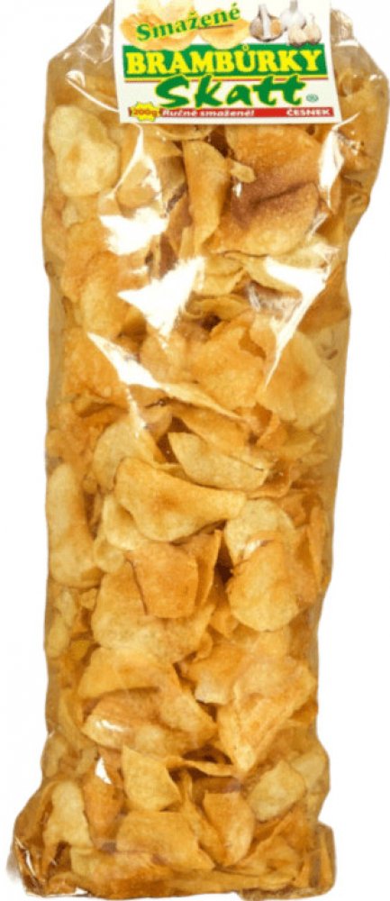 Na výrobu brambůrků Skatt se vybírají ty nejlepší brambory. Ty následně prochází procesem loupání a ručního čistění. Jednotlivé lupínky se smaží v kvalitním oleji aniž by docházelo k jeho přepalování.Výsledkem jsou dokonale osmažené a mimořádně chutné brambůrky s plnou bramborovou chutí.Vyzkoušejte bramborové lupínky Skatt s příchutí česneku.Nutriční hodnoty na 100g:Energetická hodnota2250 kJ/ 538...