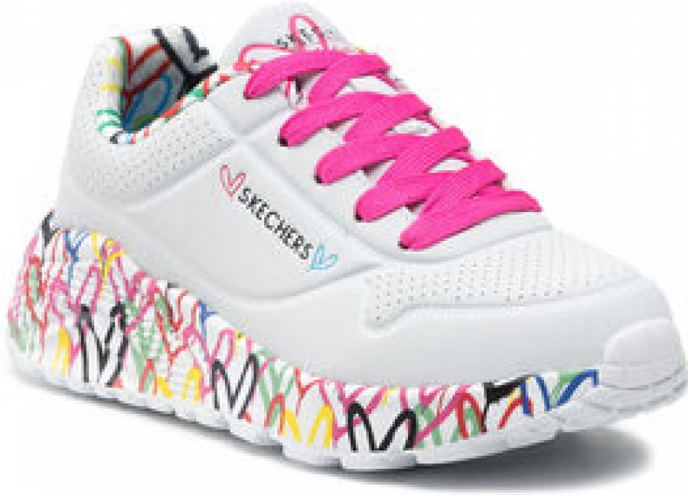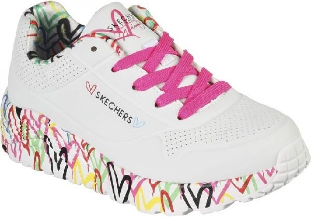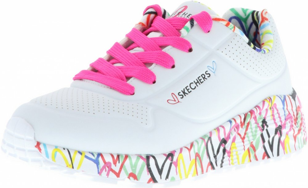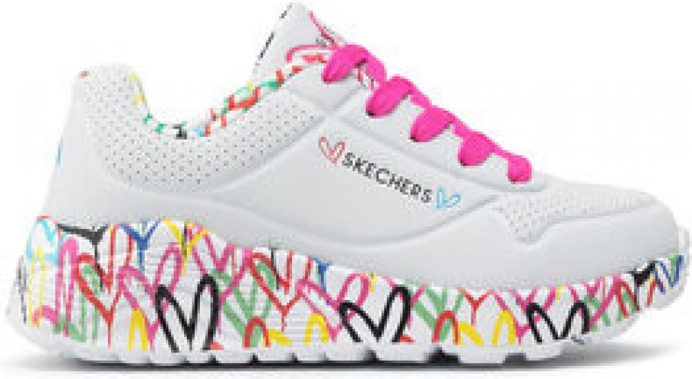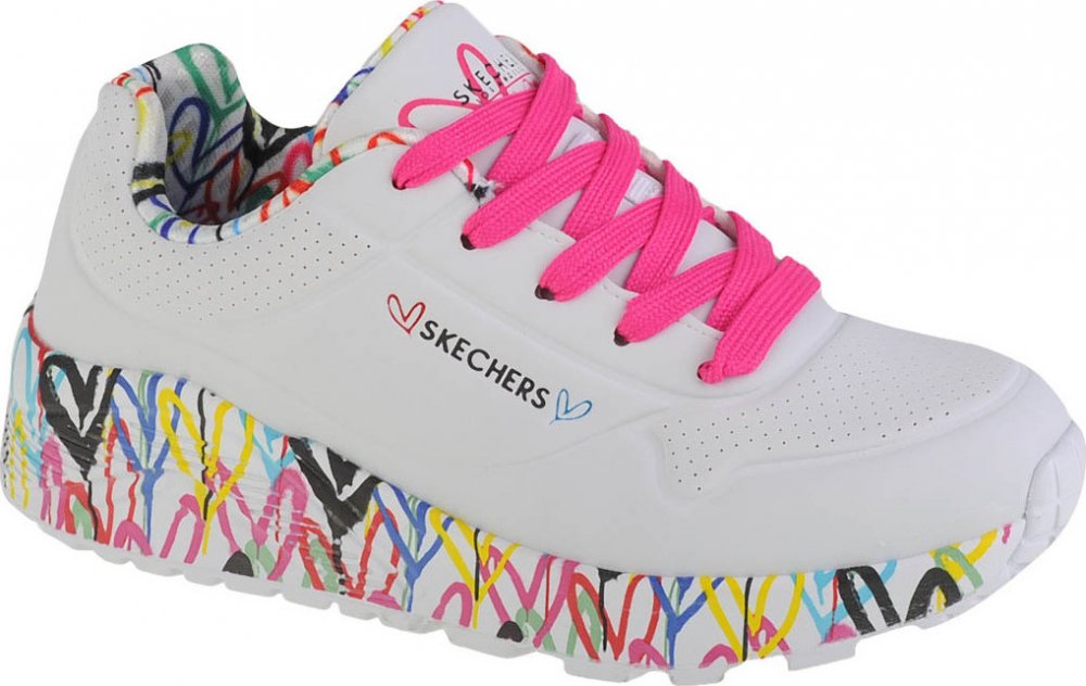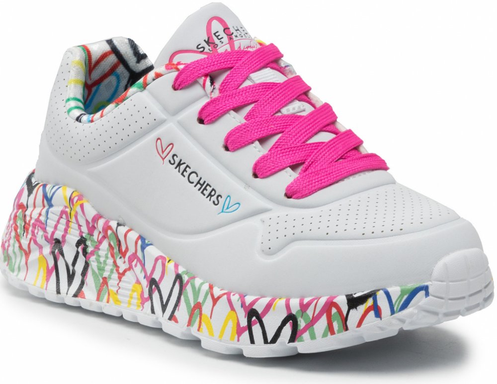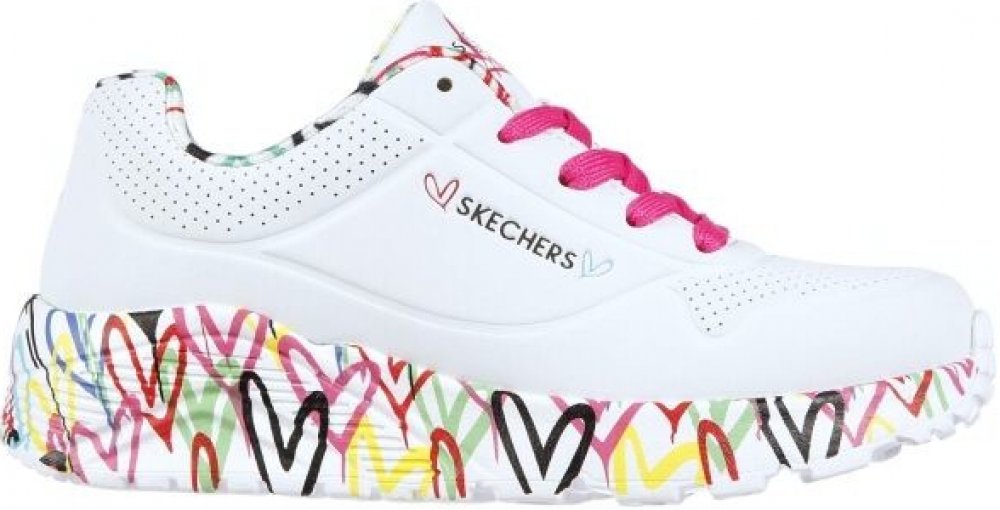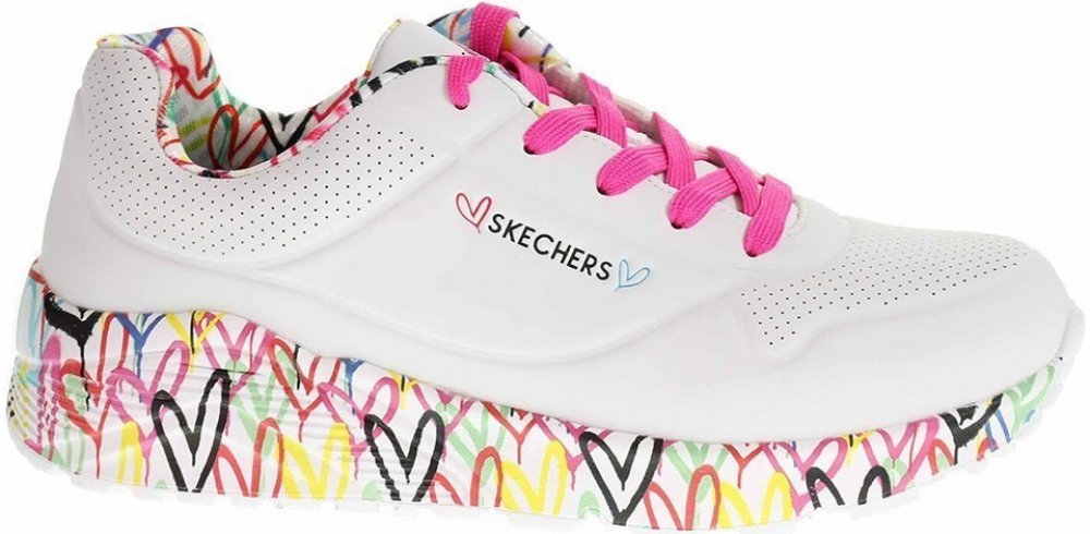 V této inspirující spolupráci spojuje mezinárodně proslulý malíř James Goldcrown své ikonické designy srdce #Lovewall s botami Skechers. V kolekci Skechers x JGoldcrown se spojuje roztomilost s barevností: Skechers Street™ Uno Lite Lovely Luv. Tyto šněrovací módní tenisky se vyznačují umělcovým charakteristickým designem ve tvaru srdce na mezipodešvi, perforovaným lemovaným svrškem ze syntetického...