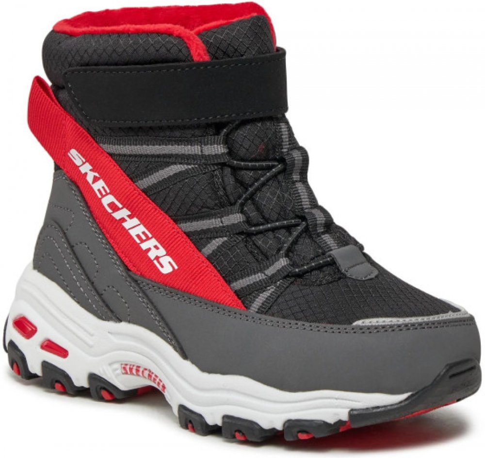 Chlapecká obuv značky Skechers. Dětské zimní boty mají moderní design v trendy barevné kombinaci. Výrazným prvkem je červený popruh s nápisem Skechers. Jsou vyššího střihu, takže poskytnou oporu během chůze také teplo v chladných měsících. Mají vnitřek vystlaný fleecovou podšívkou, která je zárukou tepelného komfortu během zimy. Výhodou je také ochranný lem po obvodu zimní obuvi pro děti. Chlapecké boty na zimu mají elastické šňůrky, které doplňuje popruh se suchým zipem. Polstrovaný límec poskytne pohodlí během celodenního nošení. Materiál svršku je odolný a disponuje voděodpudivou úpravou. Flexibilní trakční podrážka poskytne pohodlný krok i na mokrém nebo zasněženém povrchu. Výhodou dětských bot na zimu je také reflexní prvek na špičce. Detaily produktu: chlapecká zimní obuv vysoký střih odolný svršek s voděodolnou úpravou elastické šňůrky popruh na suchý zip podšívka z flísu poskytne teplo lem po celém obvodu bot reflexní prvek na špičce flexibilní trakční podrážka logo a nápis značky