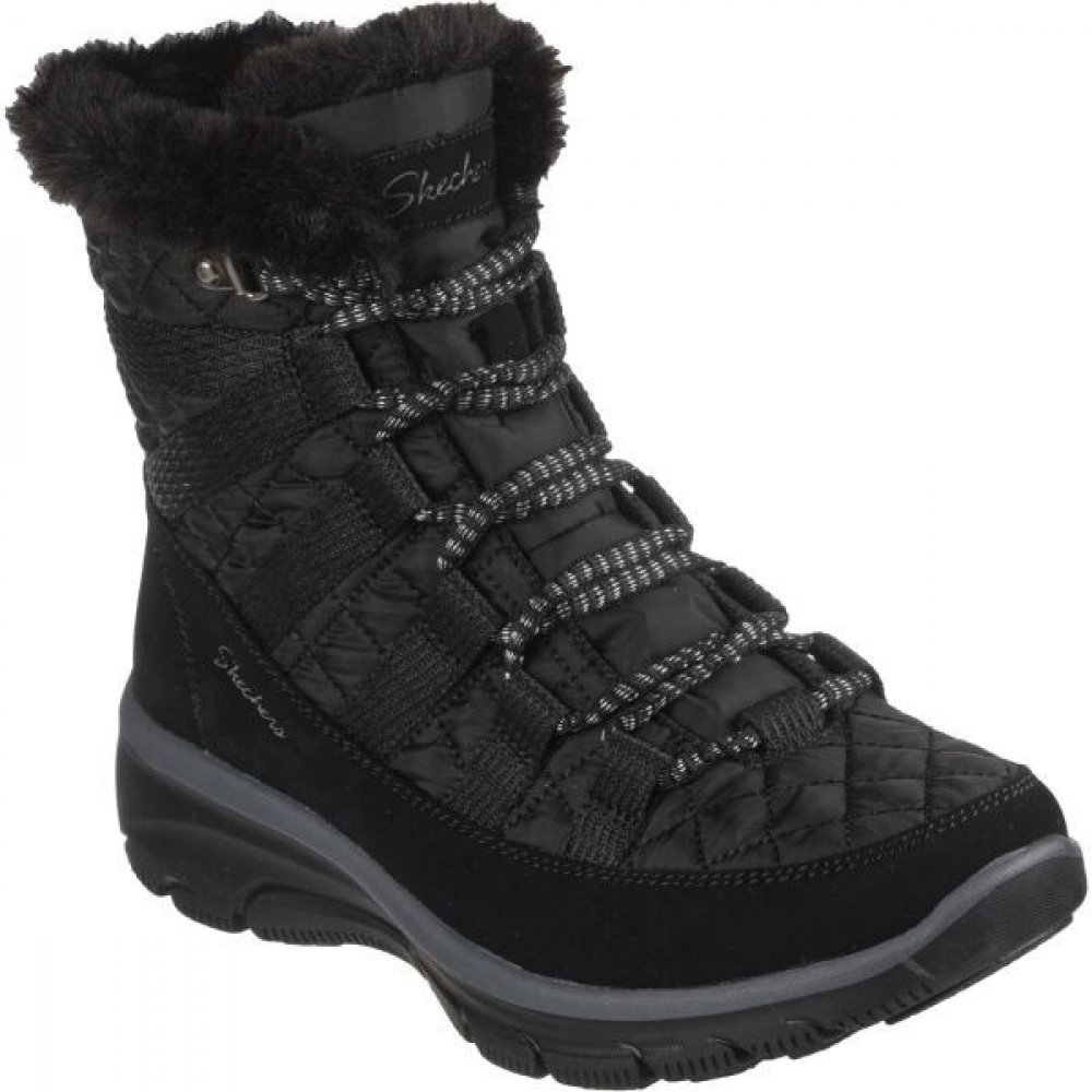 Dámská obuv značky Skechers. Dámské zimní boty ve vyšším střihu poskytnou tepelný komfort a ochranu před chladem a větrem. Černá zimní holínky mají odolný prošívaný svršek v kombinaci syntetického materiálu a kůže. Zimní look dodává dámské obuvi i umělý kožíšek v okolí kotníku a uvnitř. Výhodou je vodoodpudivá membrána a ošetření svršku 3M® Scotchgard® na odolnost vůči vodě a skvrnám. Dámské boty Skechers mají vázání na šňůrky vpředu a zapínání na YKK zip na boku. Způsob obouvání a zouvání je tak ponechán na Vás. Dámská obuv na zimu je extra pohodlná díky stélce Skechers Air-Cooled Memory Foam®. Výhodou je také Relaxed Fit® pro prostorné pohodlí na špičce a přední části chodidla. Dámské sněhule mají lehkou mezipodešev absorbující nárazy. Pružná gumová podrážka poskytne trakci a přilnavost i na mokrém a zasněženém povrchu. Detaily produktu: dámské zimní boty vyšší střih umělá kožešina odolný prošívaný svršek Relaxed Fit® pro prostorné pohodlí na špičce ošetření svršku 3M® Scotchgard® na odolnost vůči vodě a skvrnám zapínání na šňůrky i zip YKK na boku tlumící mezipodešev Air-Cooled Memory Foam® trakční pryžová podrážka