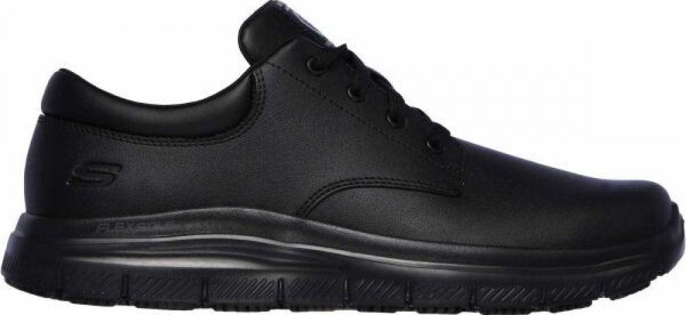 Skechers společenské kůže celoroční nízká se středním tlumením bez ochrany černá na tkaničky pracovní protiskluzové