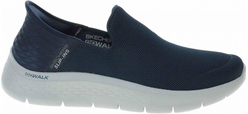 Boty Skechers Slip-ins: GO WALK FLEX - No Hands - rekreační pánská obuv s textilním svrškem, stélkou i podšívkou je pro snadné nošení bez použití rukou vybavená tvarovaným patním panelem Skechers Slip-ins™. Maximální pohodlí při chůzi vám zajistí lehké, citlivé odpružení ULTRA GO® a pohodlná polstrovaná vložka Skechers Air-Cooled Memory Foam®. Stabilizovaná a flexibilní trakce na více plochách s Flex Pillars™. Machine Washable - obuv možno prát v pračce ve vlažné vodě na program jemného praní. Obuv nesušte v sušičce, ale jen na vzduchu ! Rekreační obuv - je vhodná pro rekreačně-vycházkové příležitosti. Není určená k provozování sportovních aktivit.Obuv není vhodná pro každodenní používání. Materiál svršku: Textil. Materiál podšívky: Textil. Materiál podešve: Syntetika.