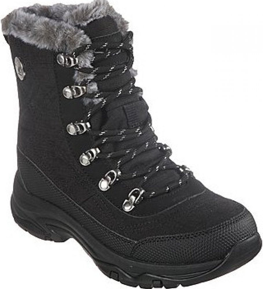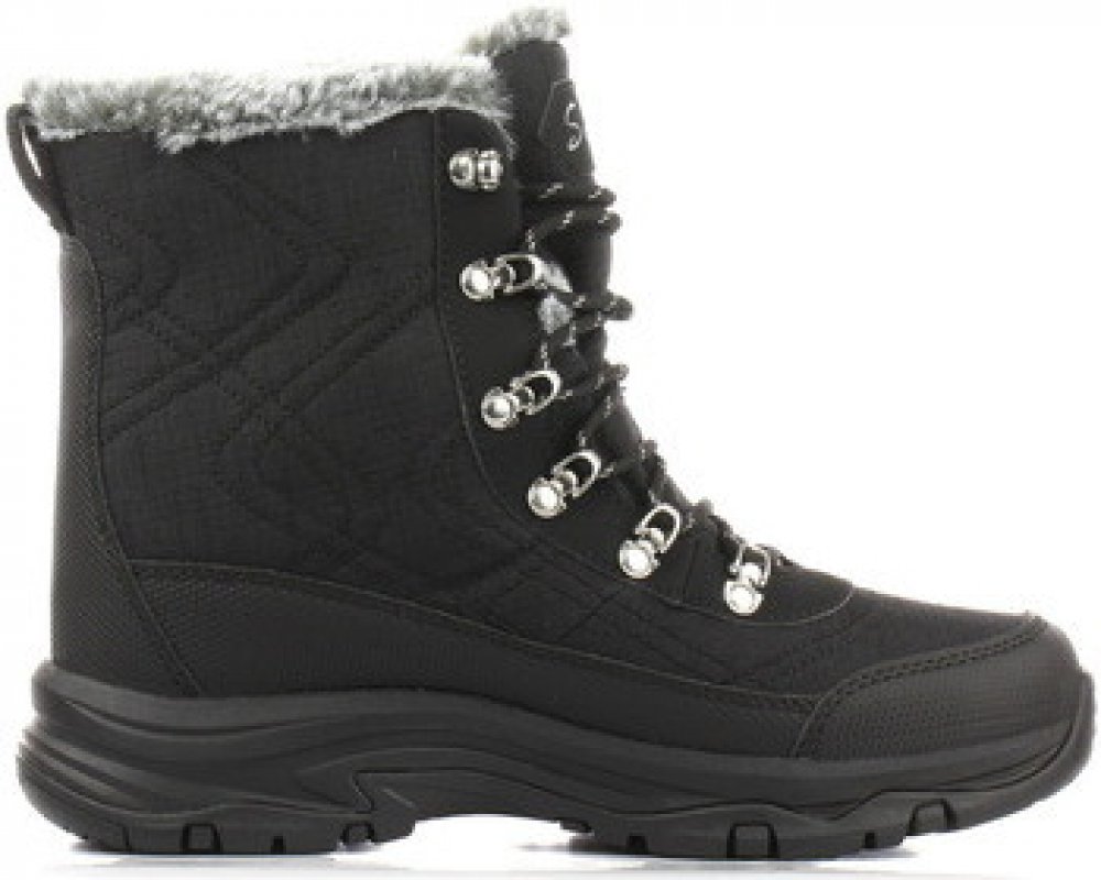 Dámské boty Skechers v černé barvě se skvěle hodí k zimnímu outfitu a chrání před chladem i sněhem díky vyššímu střihu a voděodolné úpravě. Zimní boty s měkkým interiérem z umělé kožešiny a kovovými háčky pro pevné vázání. Pohodlná vložka Air-Cooled Memory Foam® poskytuje komfort i při delším nošení.