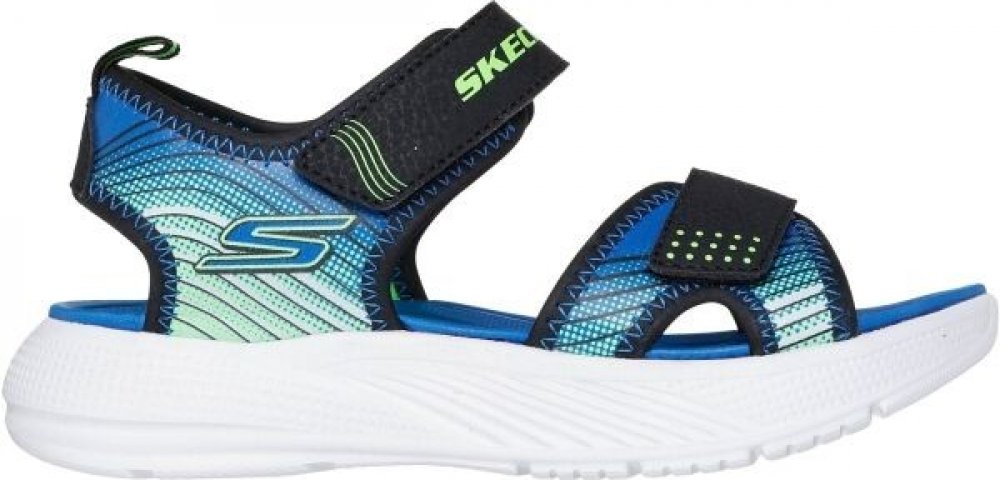 Vycházejte v pohodlí a ve stylu slunečného počasí s dětskými sandály Skechers MICROSPEC - SPLASH Tento nastavitelný sandál ve sportovním říčním stylu má reliéfní syntetický svršek s nastavitelným zapínáním na nártu a přední části chodidla a polstrovanou pohodlnou stélku.