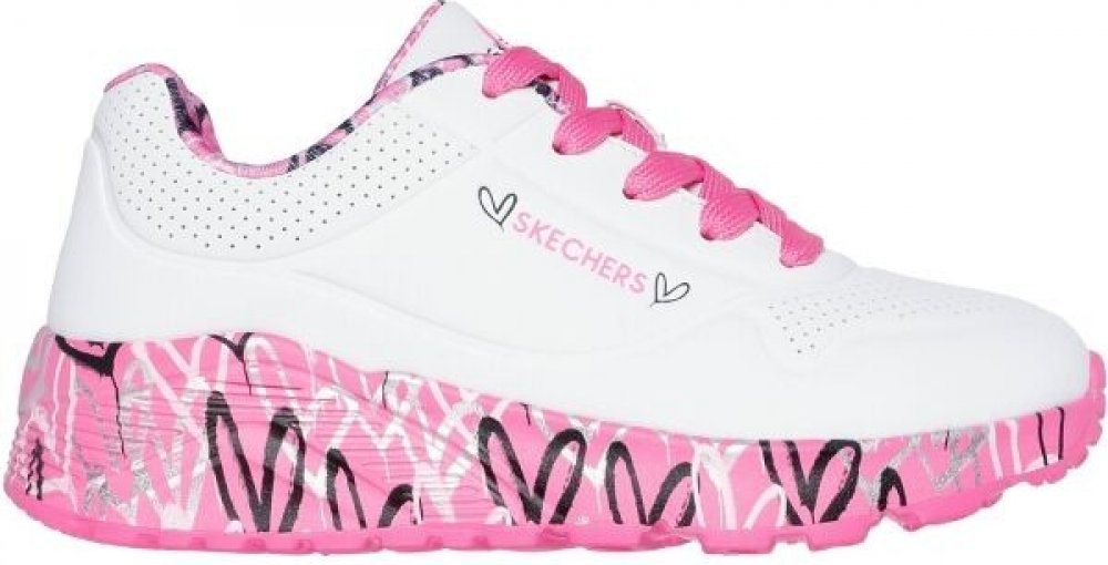 Mezinárodně uznávaný muralista James Goldcrown přináší své ikonické návrhy srdce #Lovewall do Skechers v této inspirativní spolupráci. Roztomilý a barevný styl se setkává ve Skechers x JGoldcrown: Skechers Street™ UNO LITE - LOVELY LUV. Tyto šněrovací módní tenisky se vyznačují charakteristickým designem srdce na mezipodešvi, syntetickým durabuckem a perforovaným zdobeným svrškem se stélkou Skeche...