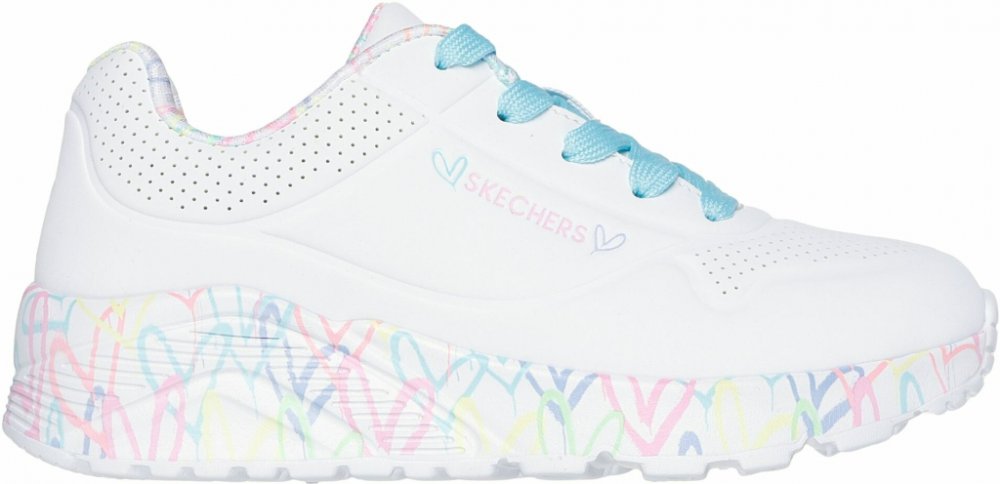 Mezinárodně uznávaný muralista James Goldcrown přináší své ikonické návrhy srdce #Lovewall do Skechers v této inspirativní spolupráci. Roztomilý a barevný styl se setkává ve Skechers x JGoldcrown: Skechers Street™ UNO LITE - LOVELY LUV. Tyto šněrovací módní tenisky se vyznačují charakteristickým designem srdce na mezipodešvi, syntetickým durabuckem a perforovaným zdobeným svrškem se stélkou Skeche...
