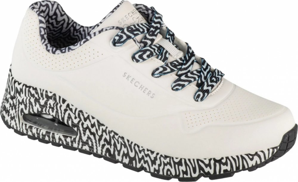 Odvážné dámské tenisky Skechers UNO-Mini Drip spojují výrazný design s maximálním pohodlím. Tyto stylové boty mají svršek z kvalitní syntetické kůže s originálním „drip“ efektem a vyvýšenou platformu pro moderní vzhled. Stélka Air-Cooled Memory Foam a vzduchový polštář v mezipodešvi poskytují skvělou podporu a tlumení, díky čemuž jsou ideální pro celodenní nošení.
